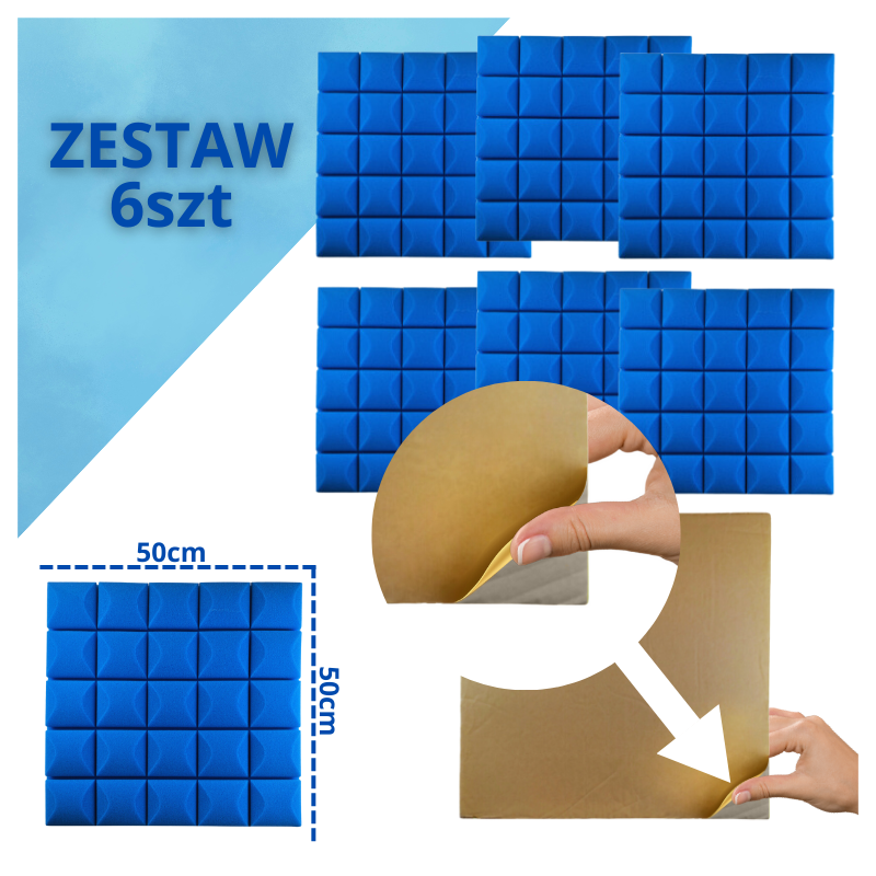 DNA AM5 BL panel akustyczny zestaw 6 szt. niebieski samoprzylepna pianka mata wygłuszająca redukcja echa pogłosu