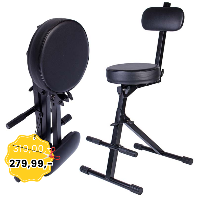 DNA HG1 to profesjonalne, składane krzesło dla muzyka z wygodnym, okrągłym siedziskiem, regulowanym oparciem pod plecy i szerokim podnóżkiem. Hoker stanowi idealnie rozwiązanie ✅ dla gitarzystów, akordeonistów, klawiszowców, osób grających na skrzypcach, kotłach oraz wielu innych instrumentach muzycznych.