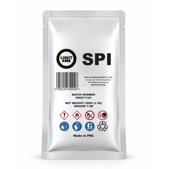 Zadbaj o olśniewający efekt zimnych ogni na każdej imprezie ✨ Light4Me SPI to granulat pirotechniczny na bazie tytanu, który pozwoli Ci uzyskać wysokie, efektowne i całkowicie bezpieczne fontanny iskier o zasięgu od 1 do nawet 3 metrów ⚡ Idealny do pokazów scenicznych, wesel, eventów firmowych, koncertów czy pokazów tanecznych - wszędzie tam, gdzie liczy się efekt i bezpieczeństwo ✅